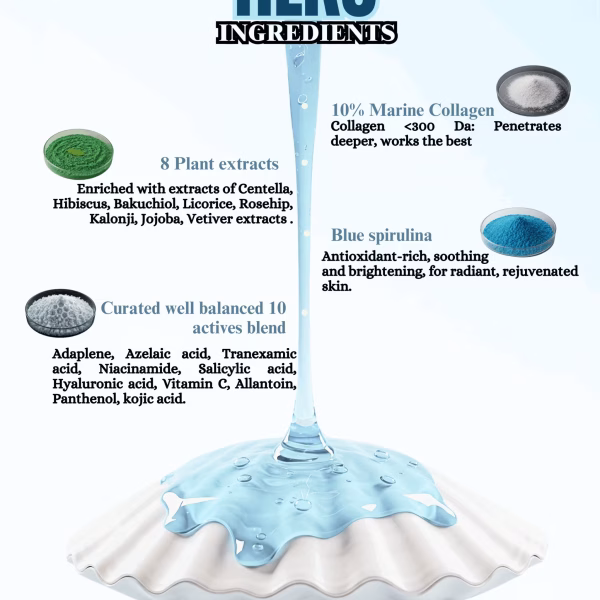 This skin-loving formula begins with marine collagen, known for its ability to restore and rejuvenate, working alongside nourishing rice extract, aloe vera and rose extracts to soothe, brighten, hydrate, balance pH. Ceramides, panthenol, hyaluronic acid lock in hydration, strengthening your skin’s natural barrier, while niacinamide evens out skin tone.